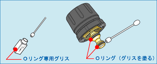 ②図のように○リング部(2箇所)にグリスを塗ってください。