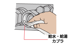給湯・給水カプラに髪の毛が付着してますと接続や通水に不具合が生じるおそれがあります。