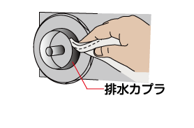 - 排水カプラ外側及び内側に付着した髪の毛やゴミをタオルなどで取り除いてください。