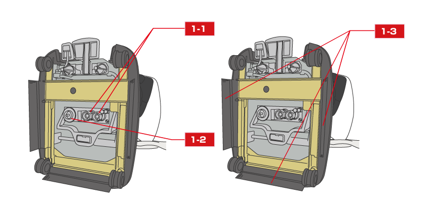 - 2-2. 露受け、給水、給油カプラ、モヘアの清掃