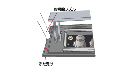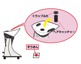 - ふた受けに付着した毛髪やゴミなどを掃除機などにより清掃してください。