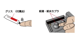 長くご使用いただいくために、上部ユニットの接続(給湯・給水管の接続)が重く感じてきたら、付属品のグリスを給湯・給水カプラの周囲に薄く塗ってください。