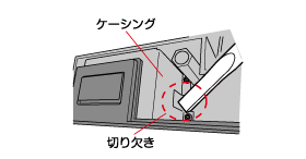 - 前ふたの口から入り込んだ髪の毛は、ケーシングの切り欠けからも吸い取ることができます。