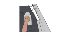 - 2.カプラふたが開くと、前ふたのロックが解除されます。 ロックが解除されたら、前ふたの口にお掃除ノズルを入れ込んだまま、カプラふた開閉用金具を押し込んでください。 前ふたが部品に引っかかり、前ふたが開いたままの状態になりますので、清掃がしやすくなります。