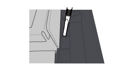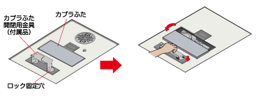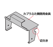 - ※カプラふた開閉用金具は、切欠きをイス側に向けてロック固定穴に挿入し、カチッと音がするまでしっかりと押し込んでください。(この状態で手を離してもカプラふたは開いたままになります。)
