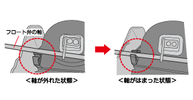 お掃除の際、フロート弁の軸を外さないように注意してください。 逆流した水により、水漏れが発生するおそれがあります。